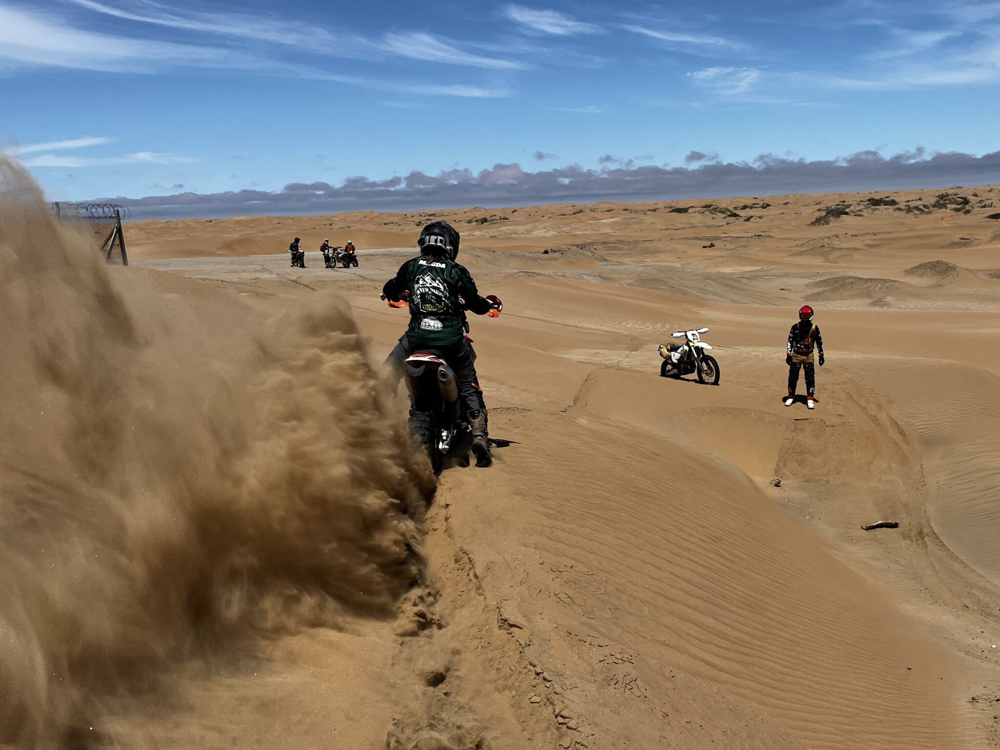 This isn’t a beach cruise. It’s Northern Namibia—deep desert country—where the riding is as real as the horizons are wide. We trace abandoned tracks, drop into dry riverbeds, crest rocky passes, and open the throttle across empty basins where the sun does all the talking. When we reach the ocean, an unforgettable beach ride awaits!