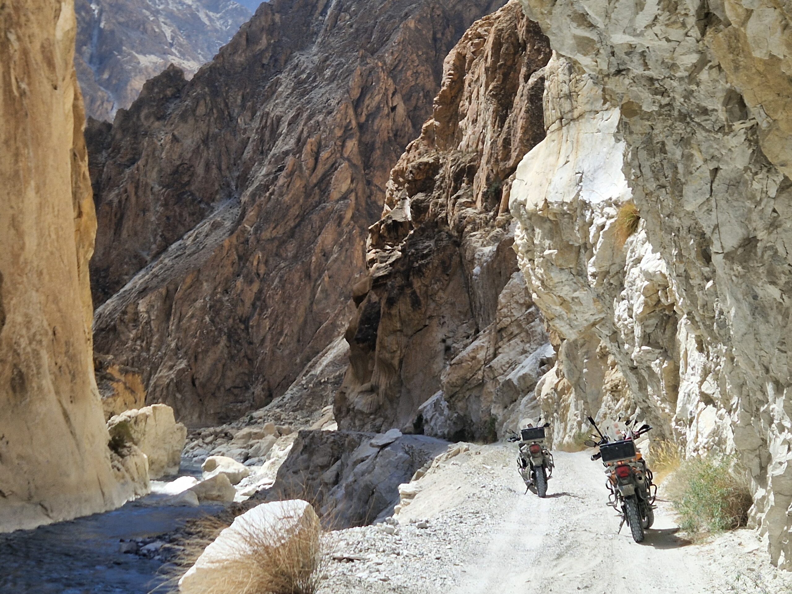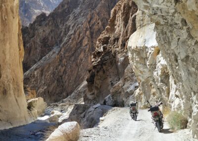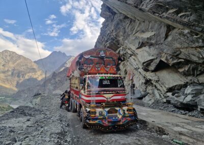 Jedna z najbardziej legendarnych dróg północnego Pakistanu. Wjazd do odciętej od świata Doliny Shimshal – wąska, techniczna trasa wykuta w skałach nad rzeką.